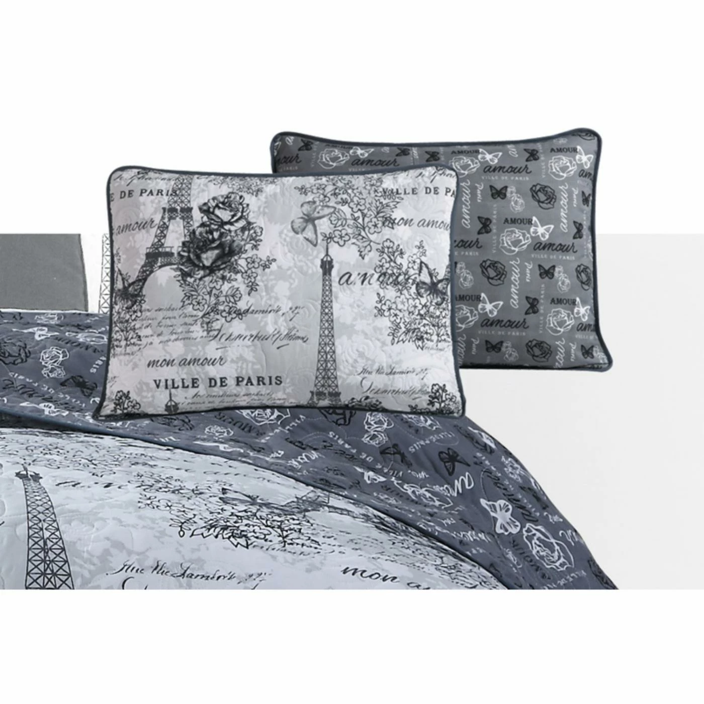 Amour is what you’ll feel for the Amour Parisian Reversible Quilt Set by Blush. This beautiful quilt set is made from comfy microfiber and polyester. It features handsome prints of the Eiffel Tower, butterflies, roses, and text on one side and reverses to a gorgeous butterfly-and-rose pattern on the other. The whole reversible quilt set is machine washable and lightweight, so it provides comfort no matter the time of year. After all, love is always in season.
