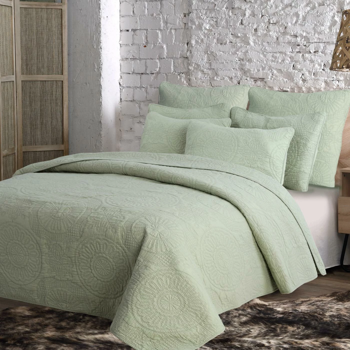 The Avani Quilt Set by Estate Collection brings serenity to your bedroom. The sham(s) and quilt feature soft 100% cotton construction with understated floral medallion stitching. This quilt set is machine washable for easy cleaning, and offered in your choice of available size and color.