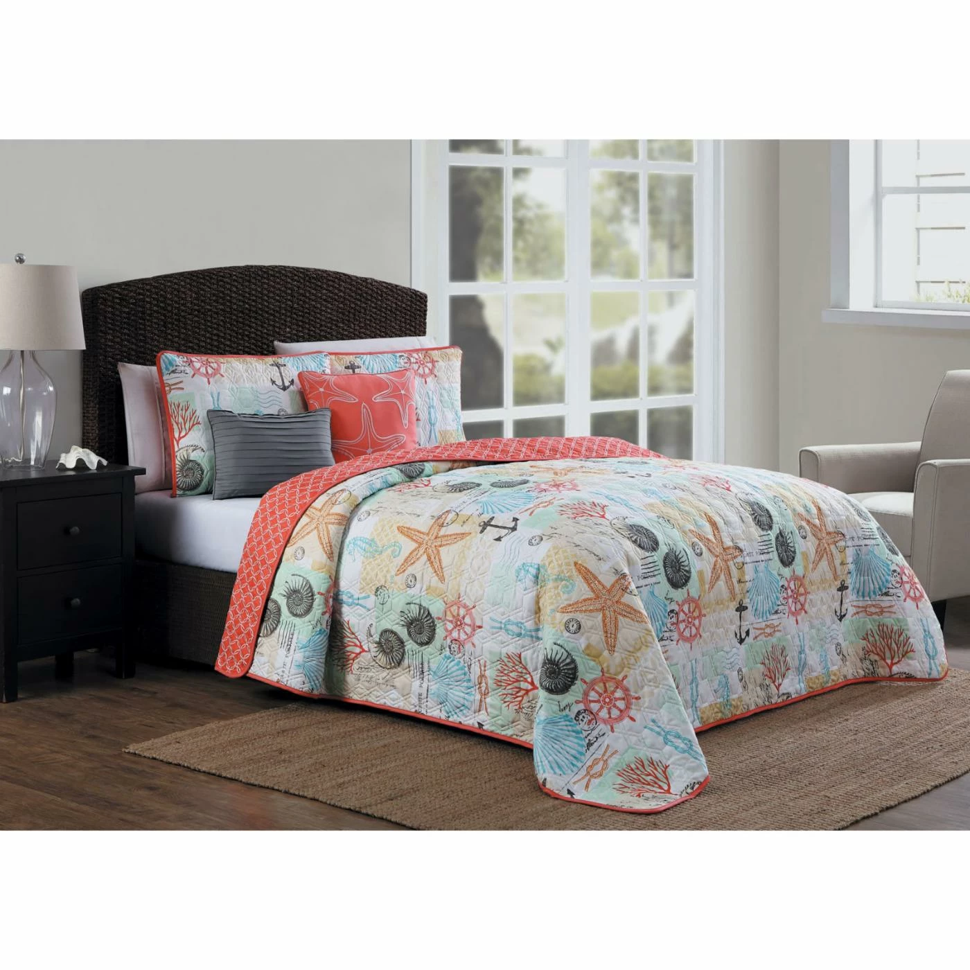 Come sail away to sleep with the Belize 5 Piece Quilt Set by Avondale Manor. This polyester microfiber set is over filled to keep you comfortable. The quilt on this set is reversible giving you multiple looks for this multicolored nautical pattern. This beach and nautical theme will complement your transitional style. Machine washable.