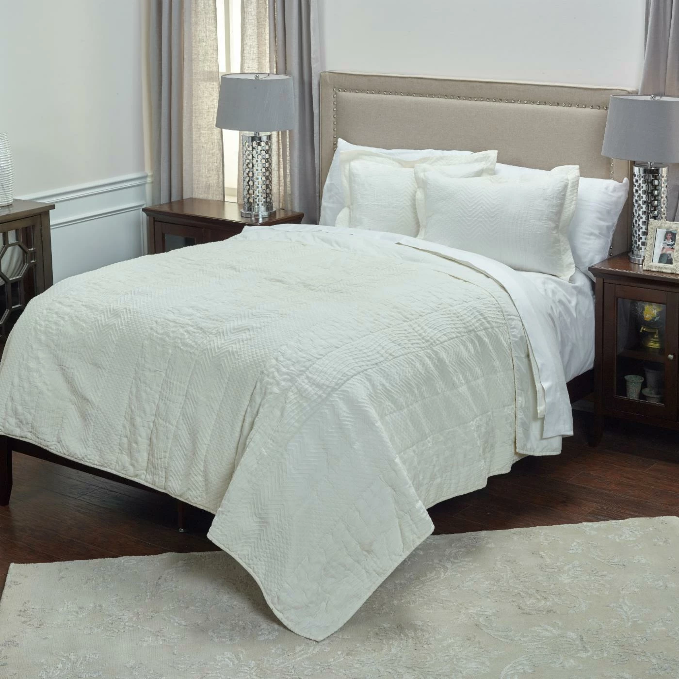 Bring understated elegance to your bedroom with this super cozy Camilia Matelasse Quilt by Rizzy Home. This quilt is made with a smooth cotton sheeting cover and comes in a soothing ivory hue. Use this machine-washable quilt on its own or as a layering piece with other bedding to stay warm during colder months. Choose from available sizes.