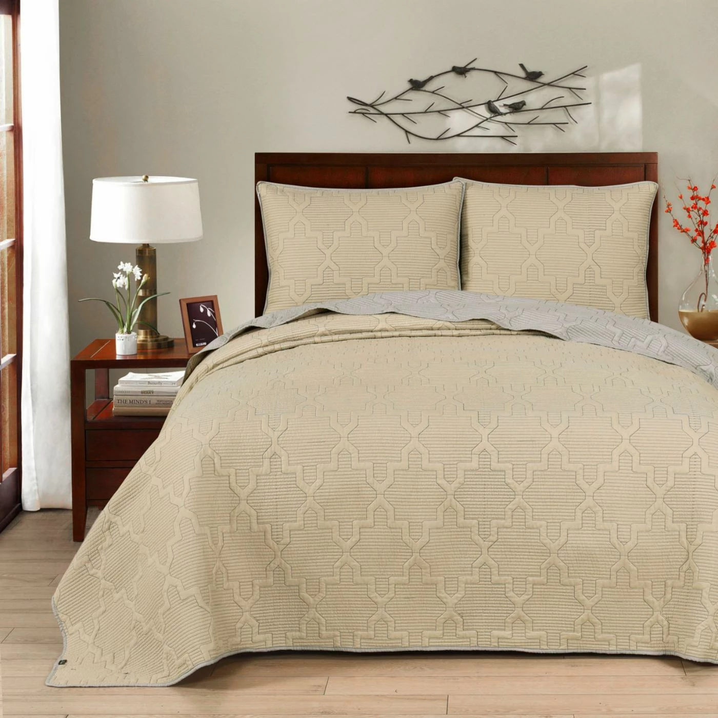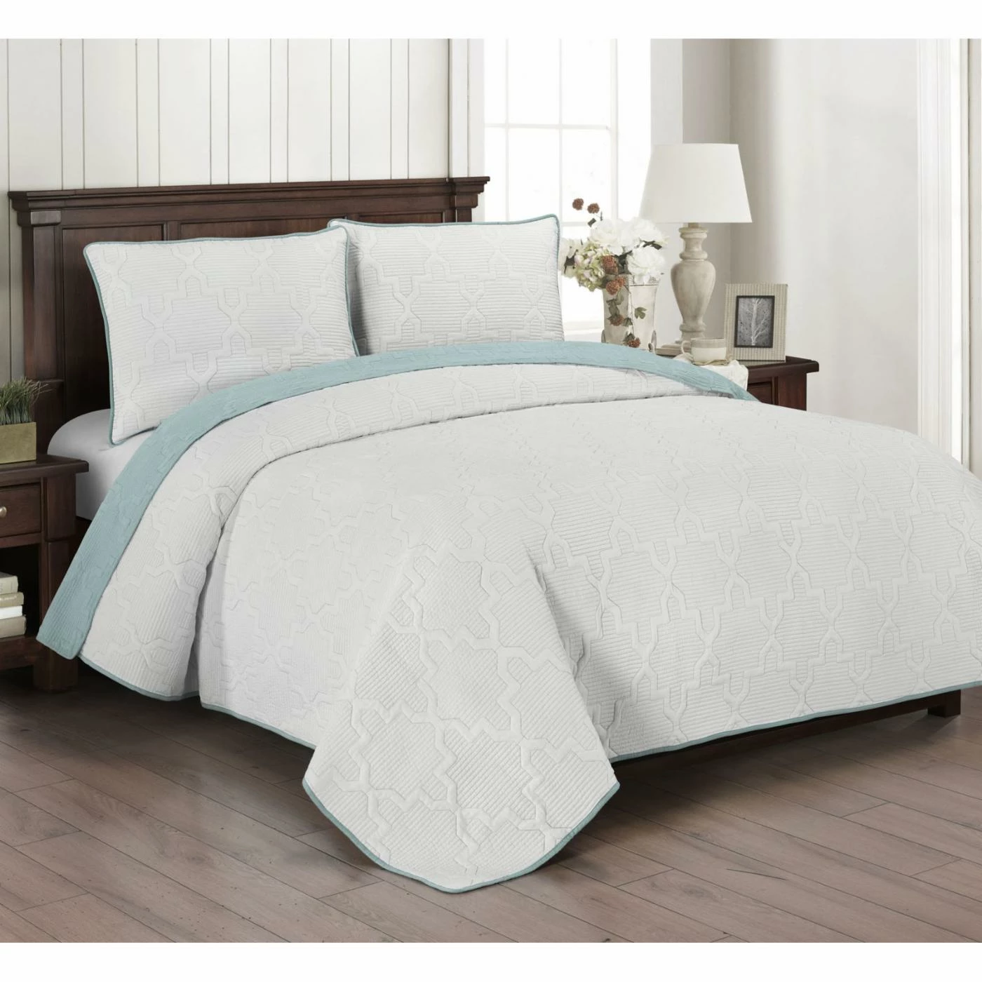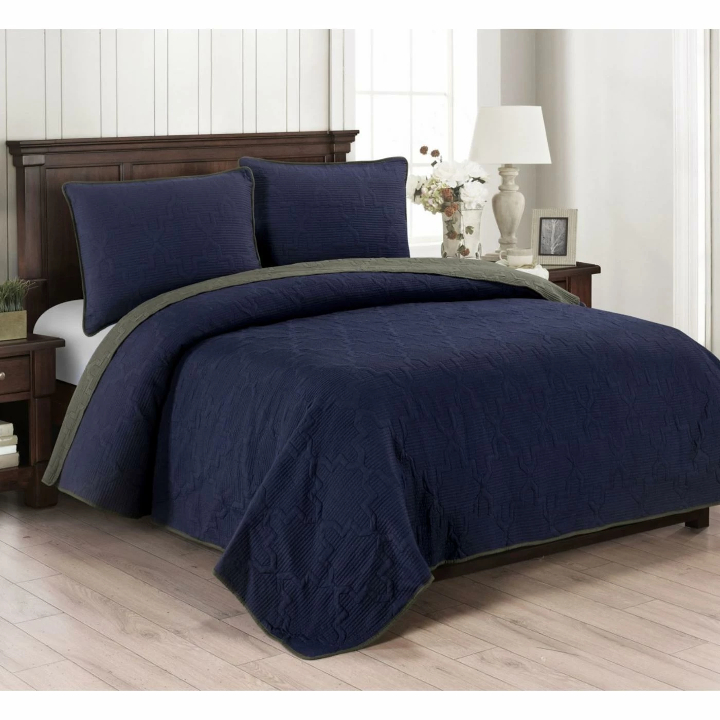 Update your bedroom with texture and Moroccan inspired detail from the Casablanca Embroidered Reversible Quilt Set by Brielle. Comfortable, versatile, and easy to care for, this classic piece will last for years. Your choice of available colors allows you to customize your own personal look.