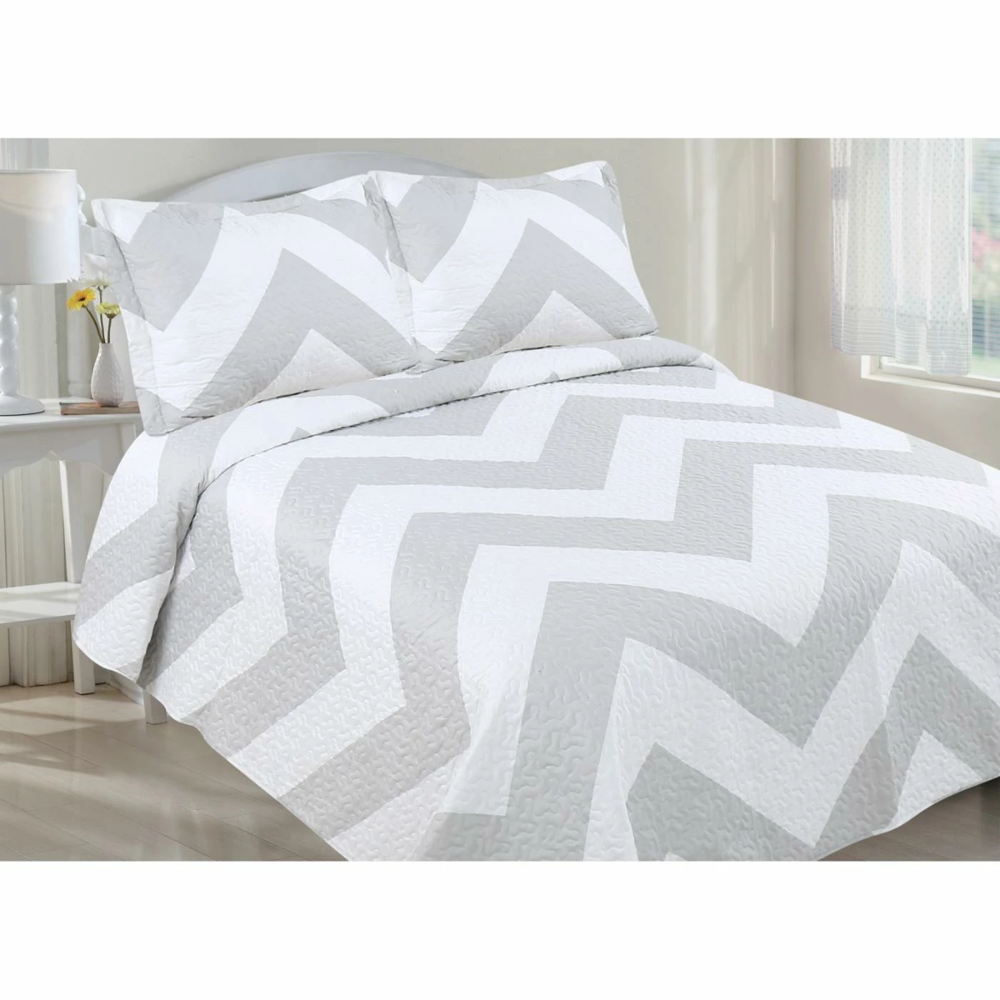 The Chevron 3 Piece Quilt Set by LCM Home Fashions will bring a classic look to your room. The versatile look of traditional chevrons, in your choice of available colors, will coordinate seamlessly with your decor. This quilt set is designed with polyester, microfiber material for extreme softness, comfort, and hypoallergenic properties. It is also machine washable for easy care. Choose from a variety of size options, complete with one quilt and one or two shams. Update your room with the classic look of this chevron quilt.