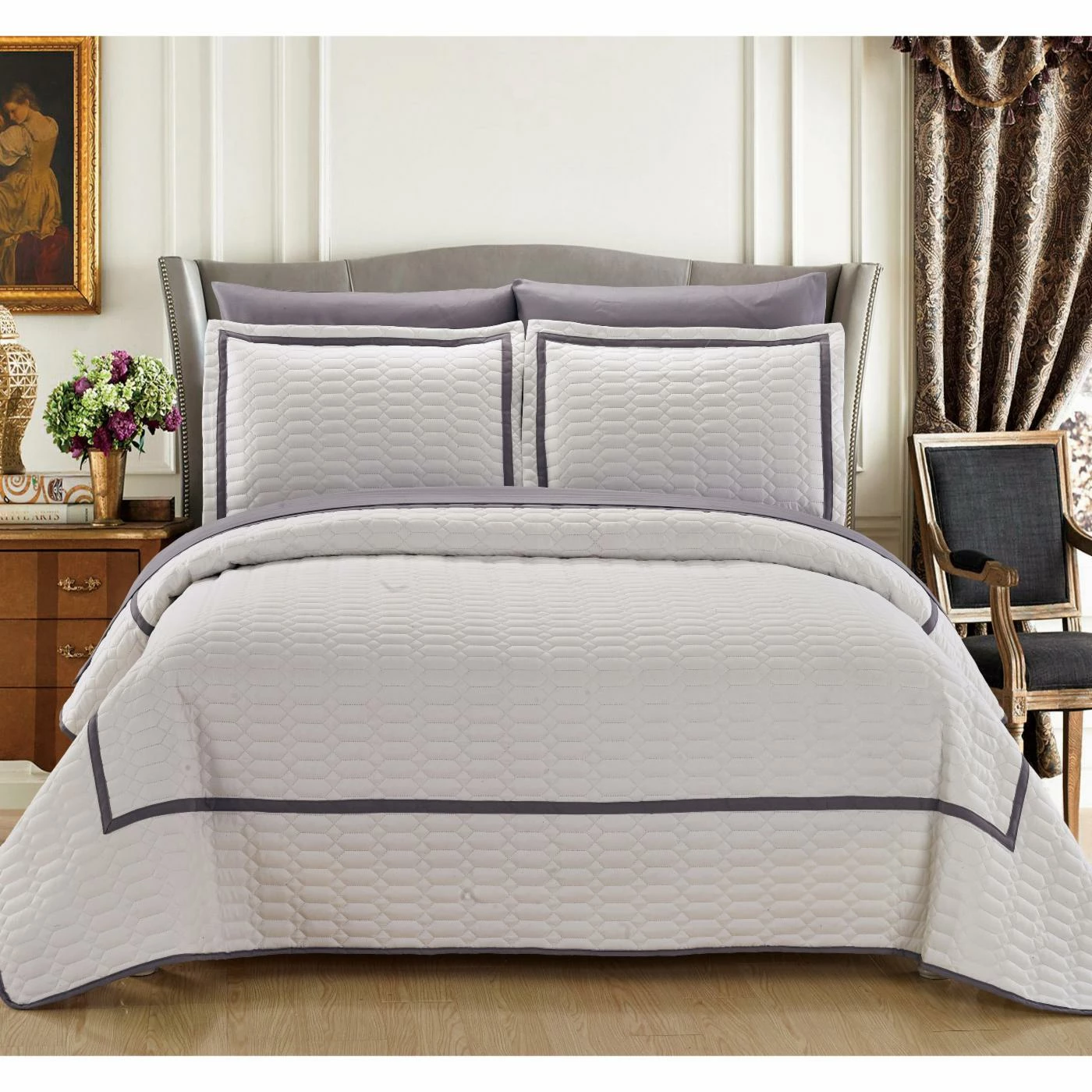 If you were ever worried that having a quilt meant transforming your bedroom into something dowdy and unfashionable, then we think you’ll find something to love in the Chic Home Marla Hotel Collection Quilt Set. The geometric stitching and colored banding give it an up-to-date look, but the dense body with its microfiber exterior and 120-gsm polyester-filled interior give you the comfort that has been expected of quilts for ages. This complete ensemble is offered in a range of standard sizes with more than one color option to suit nearly any taste. The set includes matching shams, making it an easy choice to start outfitting a bedroom or just to give one a quick makeover. Everything in this set is machine-washable, but for best results, we recommend that you have the shams and quilt dry-cleaned, or at least machine-wash them in a front-loading machine to prevent tearing.