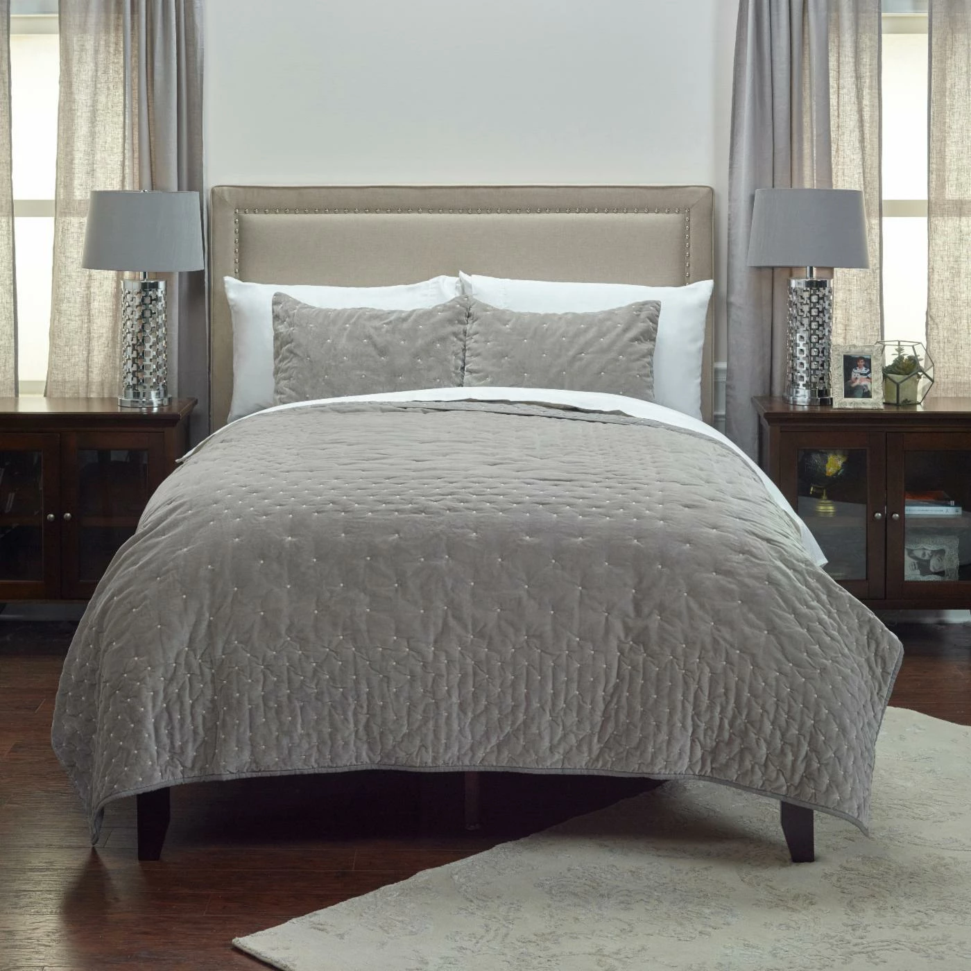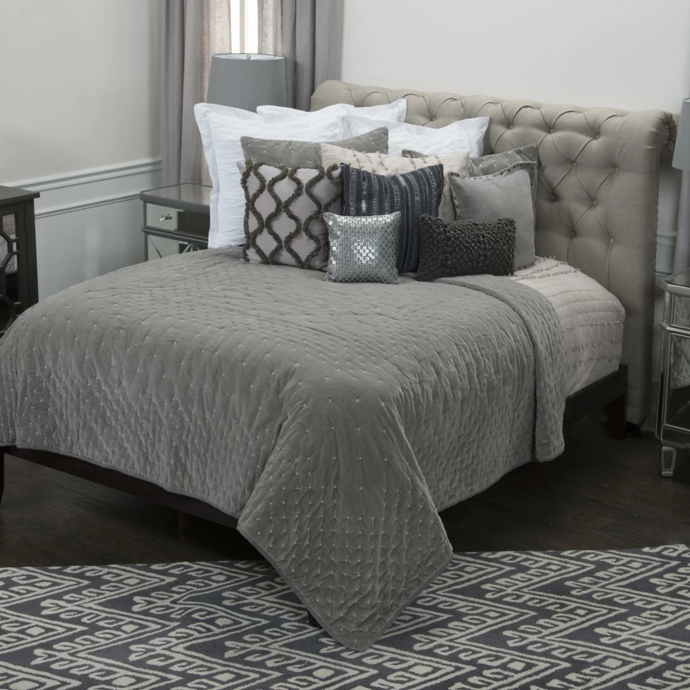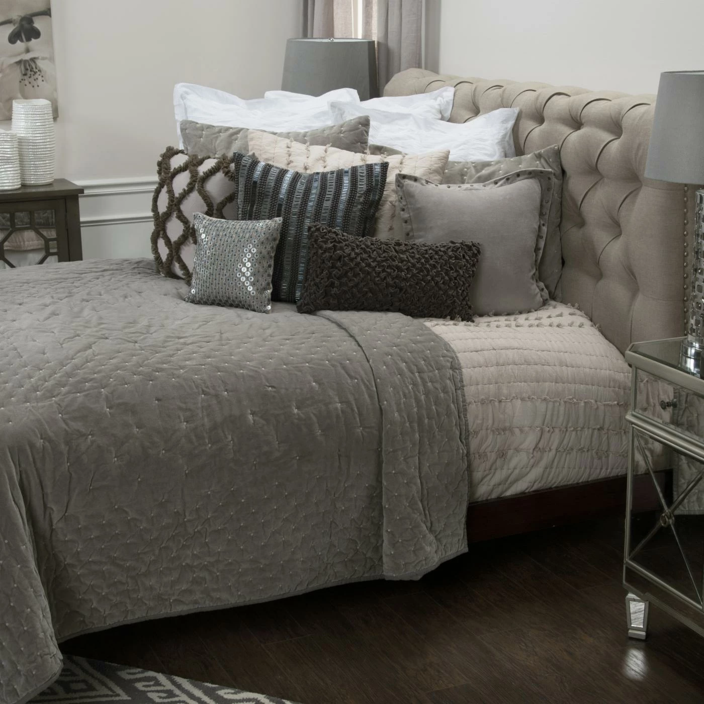 Beautifully detailed, this Giavonna Quilt by Rizzy Home showcases soft and stunning cotton voile and sheeting construction. Filled with cozy polyester material, it’s covered in an alluring rum raisin hue. This dry clean only quilt is also embroidered with small blush polka dots for added detail. Choose from available size options.