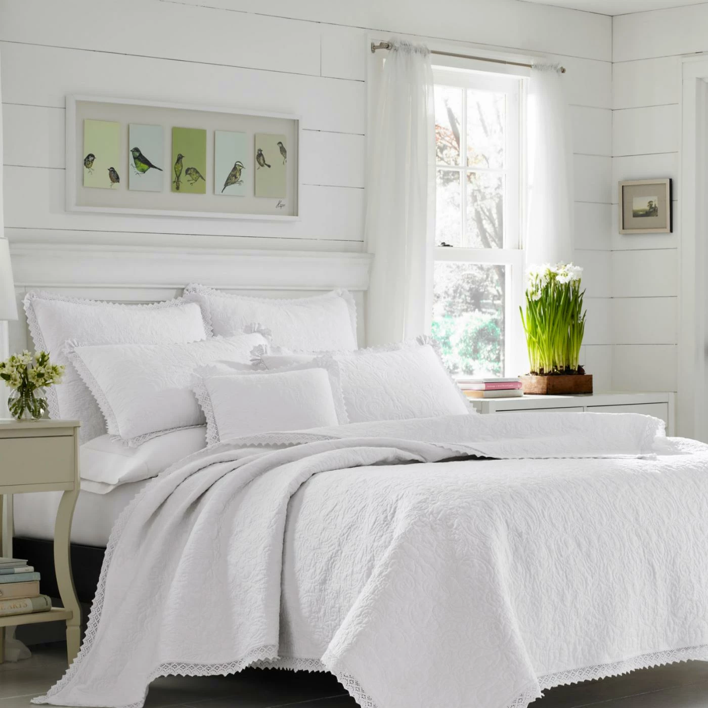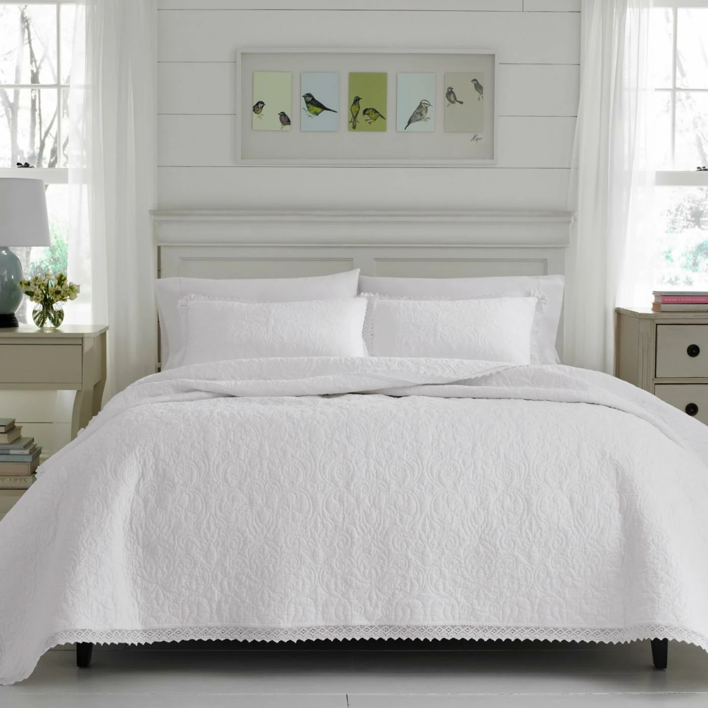 Refresh your bedroom with the romantic Heirloom Crochet White Quilt Set by Laura Ashley. This quilt features a detailed floral scrollwork design and comes complete with matching shams for a coordinated look. With its traditional design in pristine white, this all-cotton quilt effortlessly blends with any dΓ©cor. Choose from available size options to suit any style.