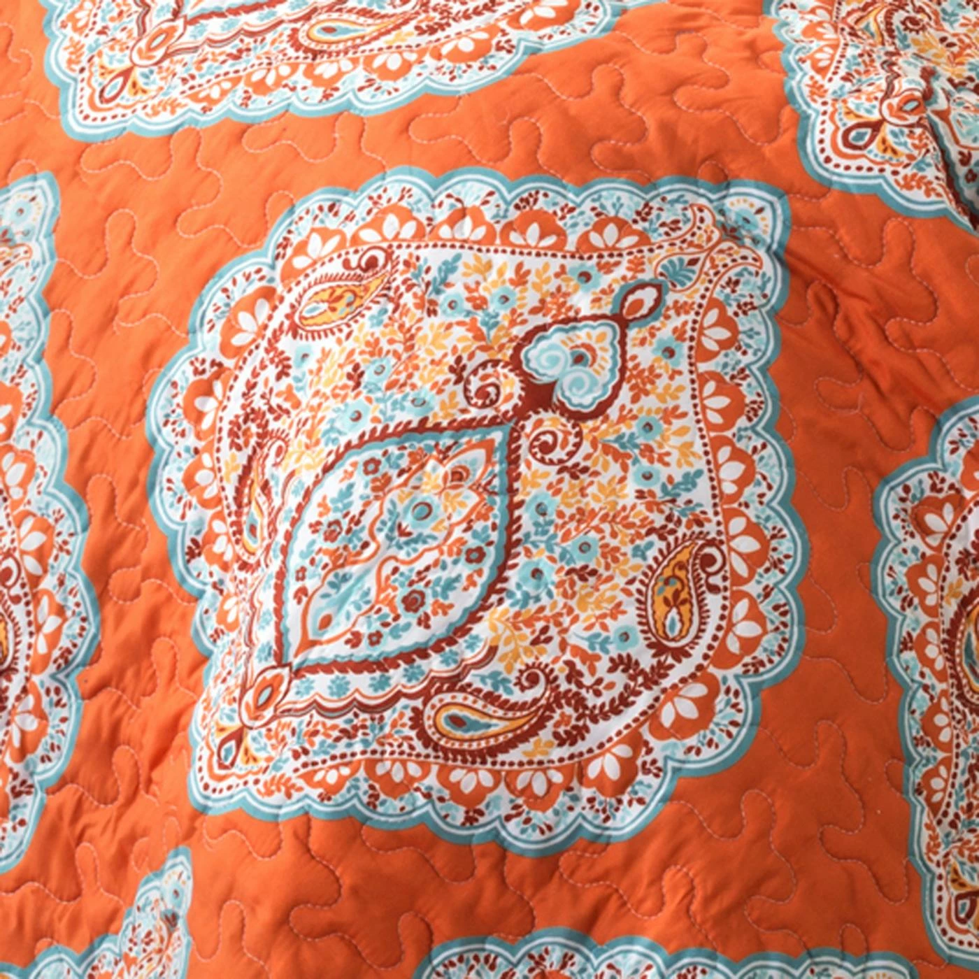 The vivid and appealing style of the Lush Decor Harley 5-Piece Quilt Set offers a tight pattern of paisleys on a soft, cozy quilt that’s curl-up perfect. This complete set is a simple way to transform any room with a comforter, two shams, and a pair of matching throw pillows. The microfiber exterior of the quilt is soft to the touch and stuffed with a mixture of 50% cotton and 50% polyester. The matching shams show off in a coordinated pattern that goes easily with the like-minded throw pillows. Each piece is machine-washable, with the exception of the decorative pillows.