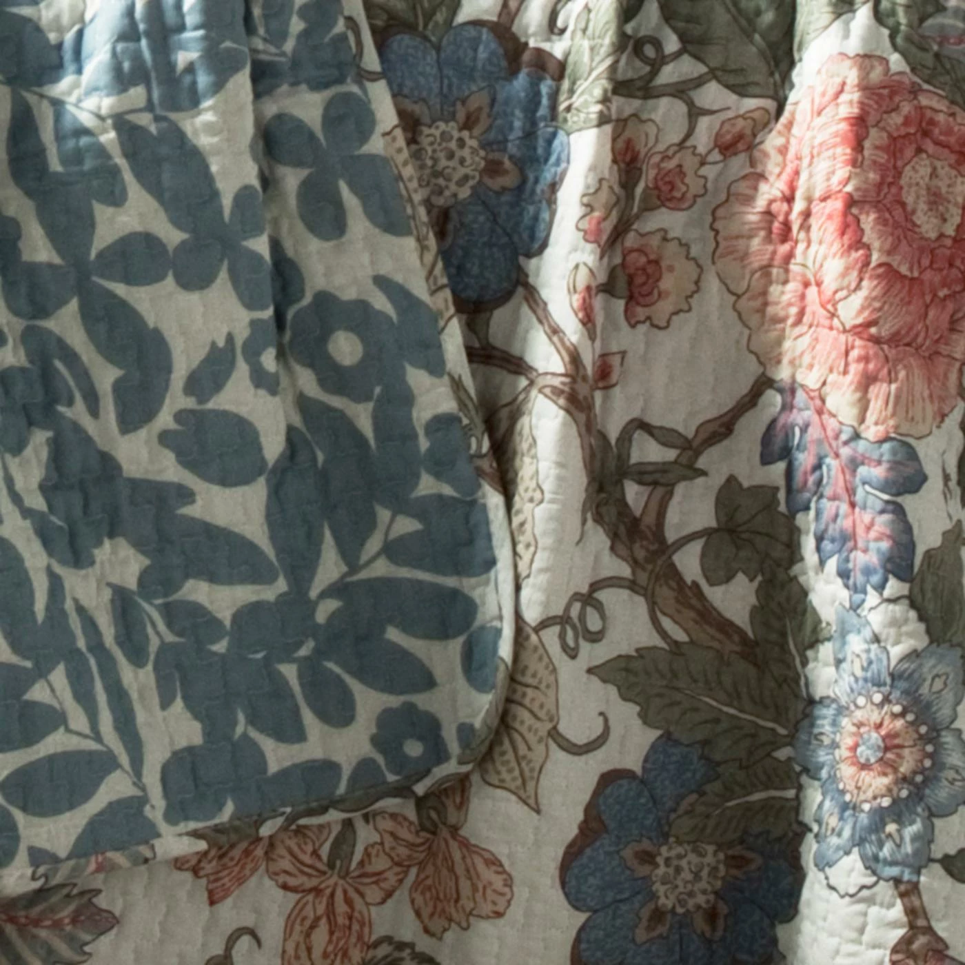 Bring the garden home with this Sydney 3 Piece Quilt Set by Lush Decor. Its pretty floral pattern comes in soothing, muted tones and reverses to a blue and white leaf design. This set includes the reversible quilt and two pillow shams. Pieces are conveniently machine washable and come in size options.