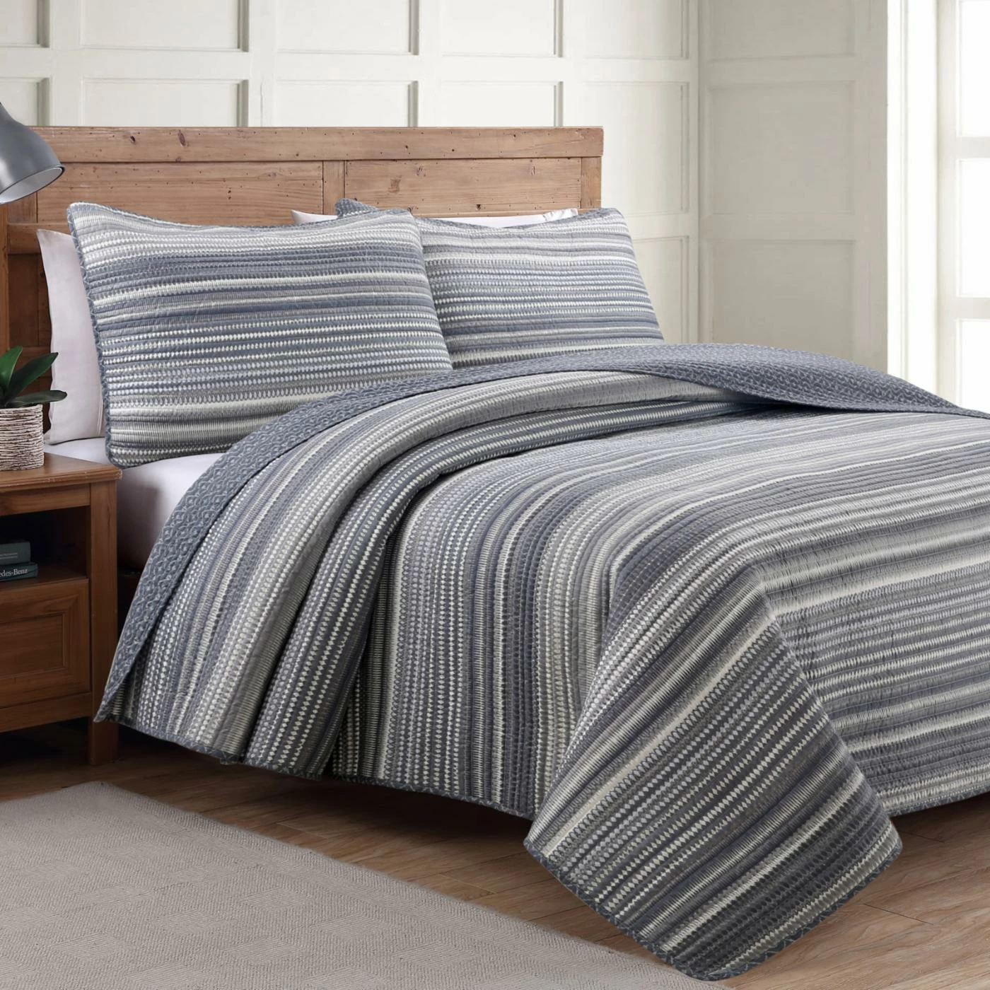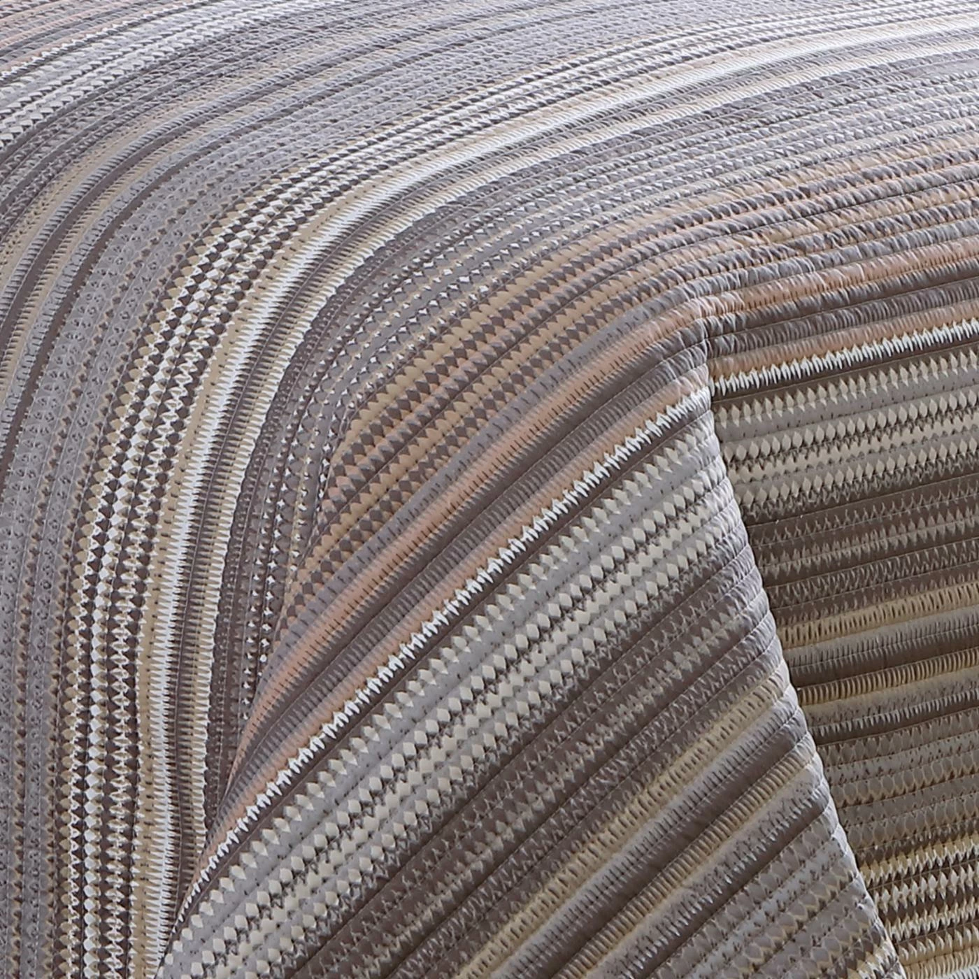 The Taj Quilt Set by Estate Collection adds geometric design to any bedroom. The quilt and sham(s) boast a 100% polyester construction that’s sure to keep you warm on chilly nights. The zig-zag ikat print reverses to a coordinating print for two looks in one. Choose from the available color combinations to best coordinate with existing décor. This quilt set is machine washable for easy cleaning and offered in your choice of available size.