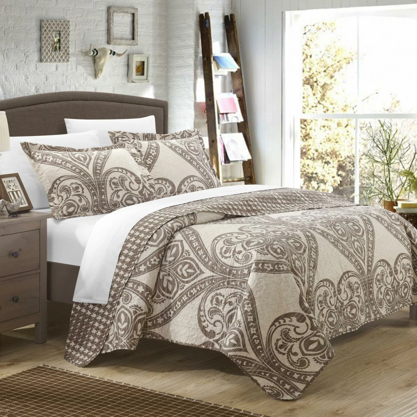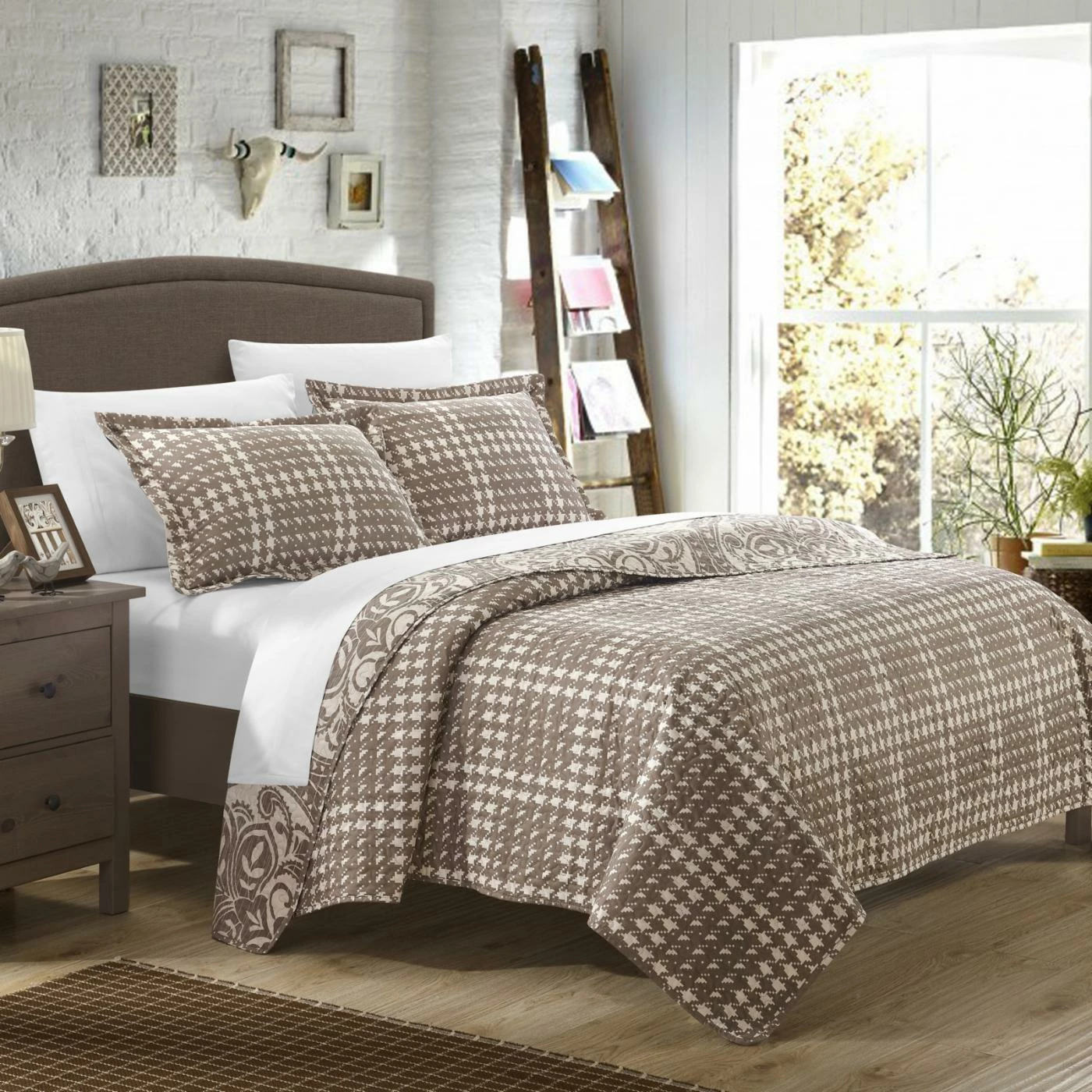 The two-in-one Terni 7 Piece Bed in a Bag by Chic Home set is a perfect pick for fans of classic patterns. It has a quilt and pair of shams that boast a stylish houndstooth pattern on one side and a jacquard motif on the other, enhanced with strikethrough effects and a jigsaw puzzle texture. Both patterns are composed with a versatile color scheme that offers loads of styling versatility. The set is made with microfiber, and has a sturdy construction that’s designed to last, making it a great choice for a guest room or a main bedroom. Machine washable, dry clean recommended.