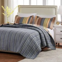 Add some timeless, classic style to your bedroom with the Millbrook Plaid Reverse Quilt Set by Nautica. The neutral gray plaid design goes with a variety of color schemes and home dΓ©cor styles. With a cover made of soft, pre-washed cotton, this quilt is sure to keep you warm and cozy. The reverse side features a dark gray stripe pattern that trims the edges of the quilt. The twin quilt set comes with a quilt and one pillow sham, while other sizes feature a quilt and two pillow shams. Choose from available sizes to find the one that works best for your bedroom.