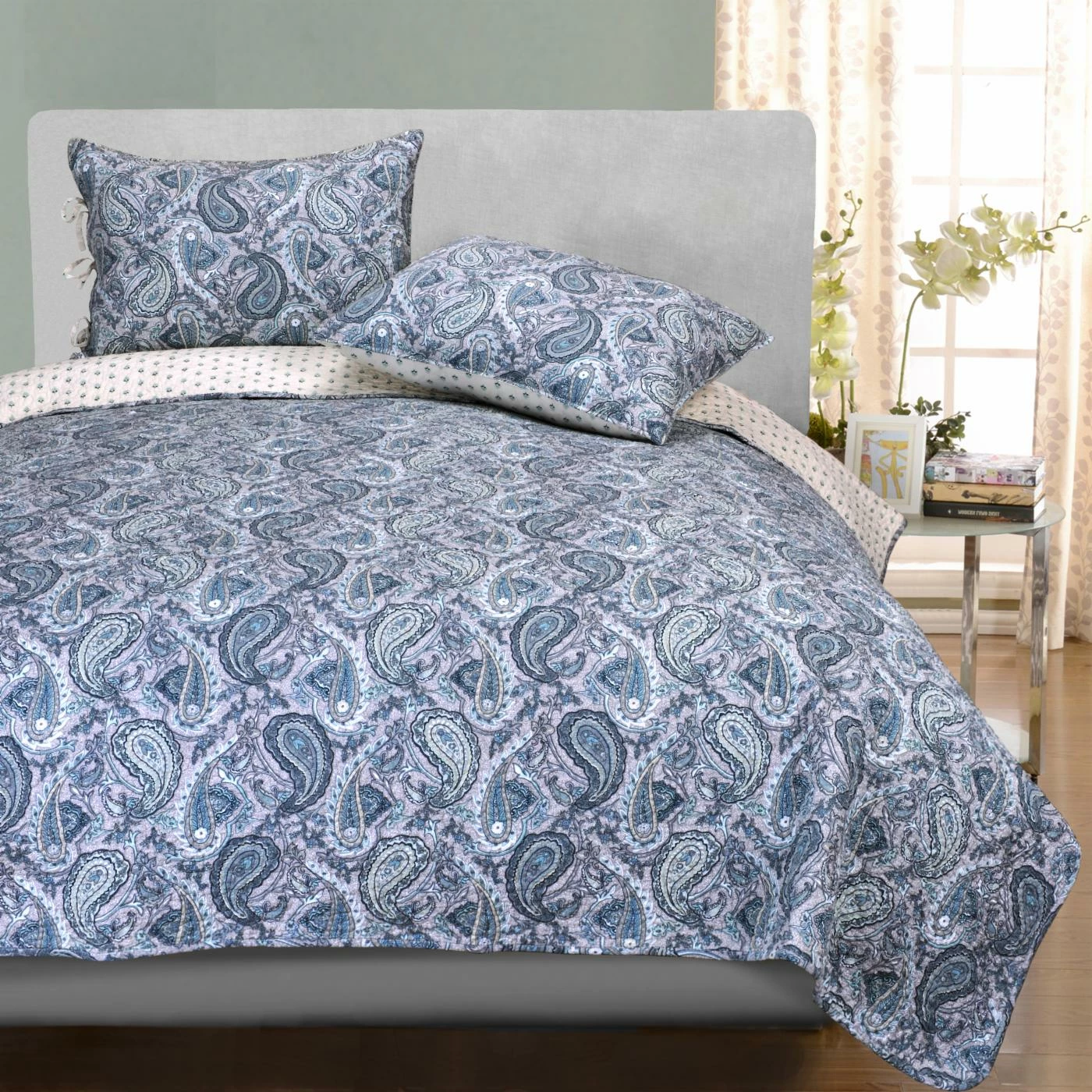 The intricate details of the Superior Cotton Moroccan Paisley Quilt Set will transform your bedroom into a Moroccan oasis. The soothing paisley is accented on the opposite side with a complementary pattern. This quilt set is made from soft and durable 100% machine-washable cotton and is available in your choice of size. The Full/Queen set includes a quilt and two standard-size pillow shams (one standard pillow sham with the Twin set). The King set includes a quilt and two king-size pillow shams.