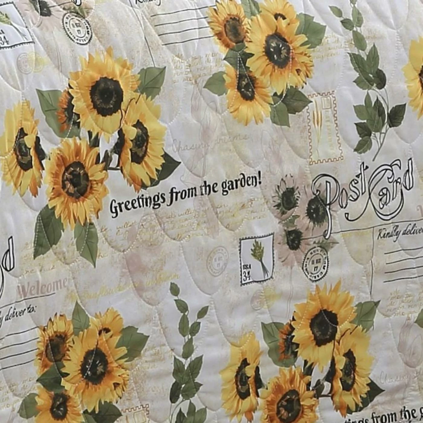 - Cheerful floral pattern featuring sunflowers and text on the front side and soft pink floral pattern on the reverse