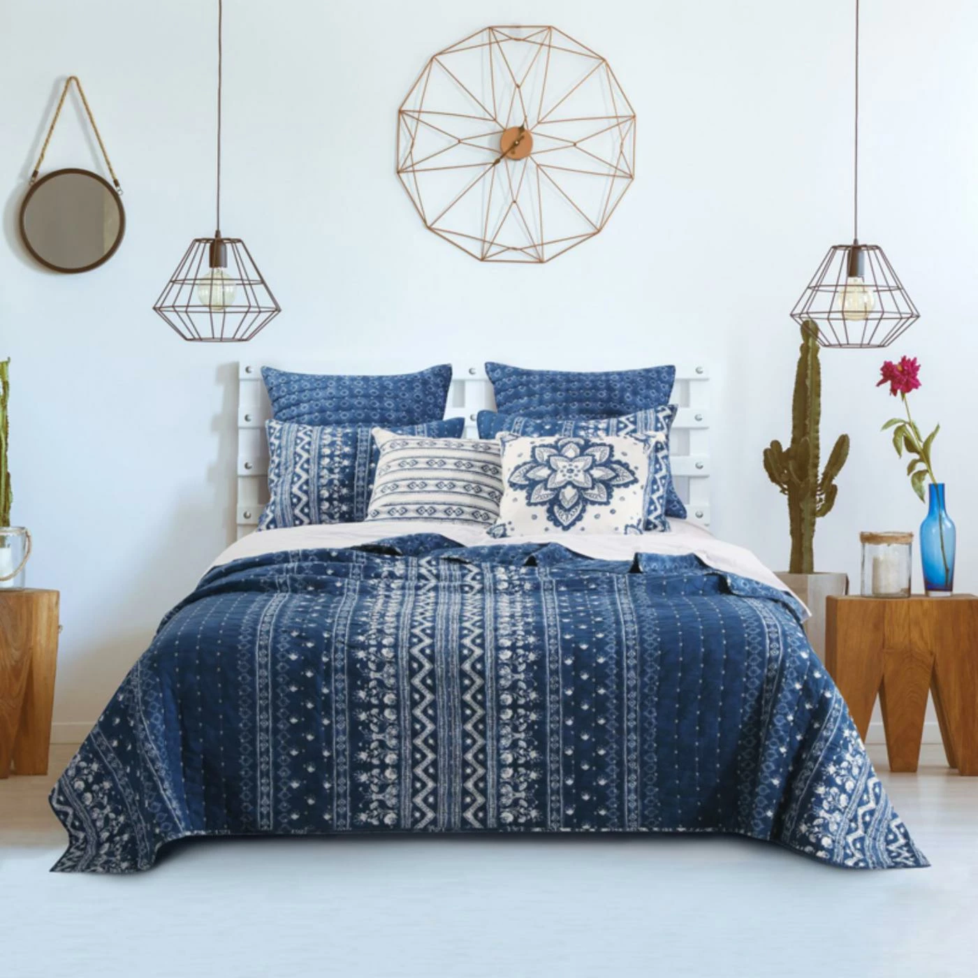 The Barefoot Bungalow brand is brought to you by Greenland Home Fashions based in New York City. The Barefoot Bungalow line of quilts features bright, enticing colors in patterns and motifs from around the world. Built with value-minded fabrics, Barefoot Bungalow styles are affordable, comfortable, and stylish.