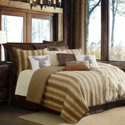Give your bed chic, coordinated style with the Hill Country Quilt Set by HiEnd Accents. The quilt features a laid-back stripe pattern in soothing brown tones, for a relaxed look that matches contemporary or rustic dΓ©cor. Matching shams complete the style, and add charming accents. The soft cotton fabric is machine washable for easy cleaning.